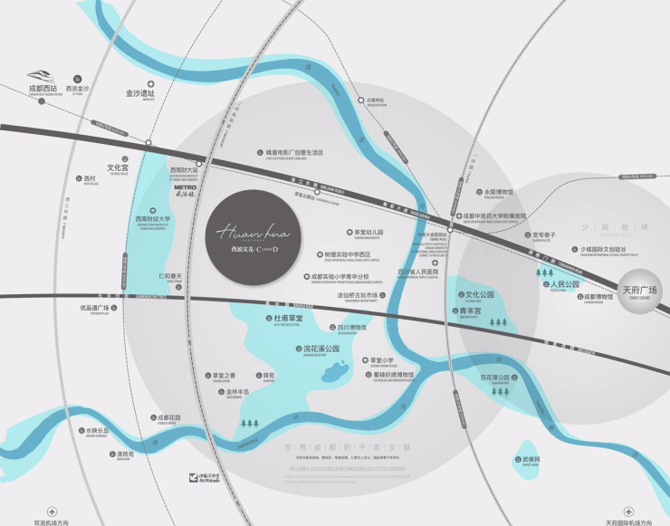 富贵交通 立体路网灵通全城 约180米直达一环;约450米灵通地铁5、6号线号线商圈环伺城市商超会聚 艺术城商业街、荟展新城、金牛万达、龙湖上城天街、凯德广场、宽